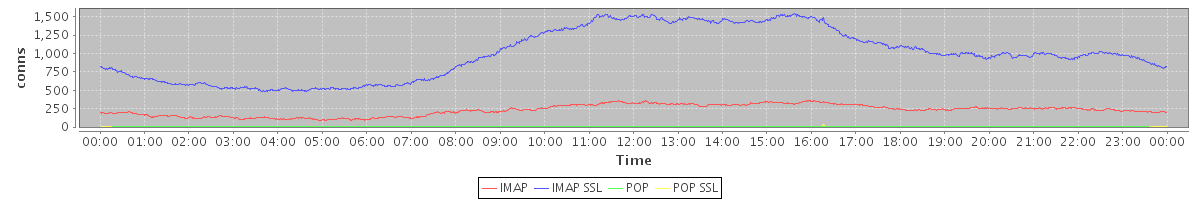 Host zm02.stanford.edu: Mailboxd: Active Connections by Client Protocol