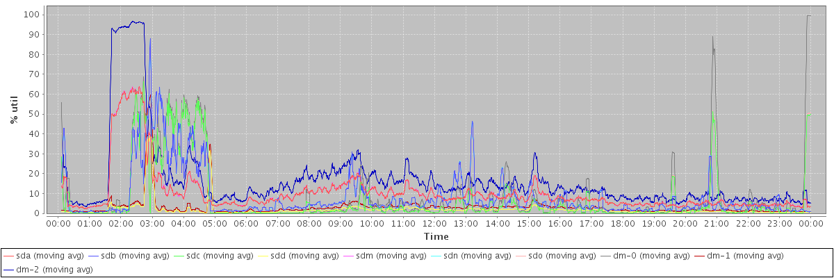 avg(sda) = 10.34 avg(sdb) = 8.35 avg(sdc) = 6.93 avg(sdd) = 1.92 avg(sdm) = 10.37 avg(sdn) = 8.34 avg(sdo) = 6.95 avg(dm-0) = 9.08 avg(dm-1) = 3.05 avg(dm-2) = 16.81