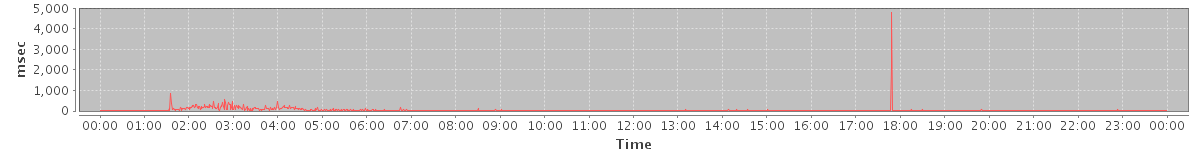 avg(SendMsgRequest) = 318.01 avg(DeleteAccountRequest) = 13238.50 avg(BackupQueryRequest) = 296.29 avg(GetAggregateQuotaUsageOnServerRequest) = 1603.00 avg(GetInfoRequest) = 260.31 avg(FolderActionRequest.delete) = 426.91 avg(SendInviteReplyRequest) = 323.07 avg(FolderActionRequest.empty) = 926.36 avg(BackupRequest) = 24962.50 avg(GetQuotaUsageRequest) = 6990.00