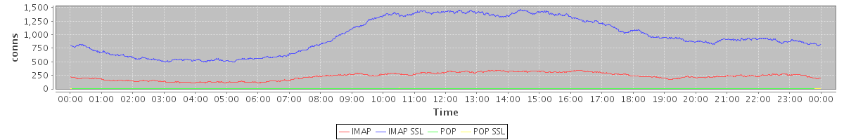 Host zm02.stanford.edu: Mailboxd: Active Connections by Client Protocol