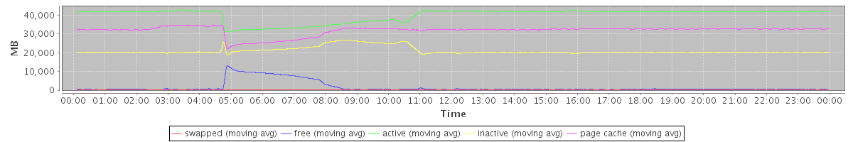 avg(swapped) = 28.55 avg(free) = 1557.88 avg(active) = 40180.64 avg(inactive) = 21037.97 avg(page cache) = 31857.02