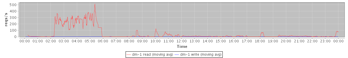 avg(dm-1 read) = 35.74 avg(dm-1 write) = 0.06