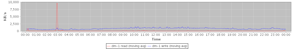 avg(dm-3 read) = 0.62 avg(dm-3 write) = 18.80