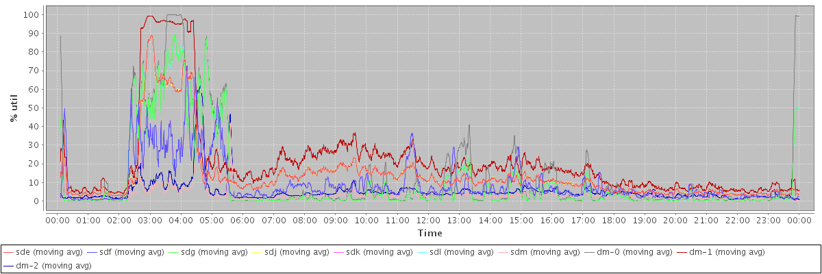 avg(dm-2 read) = 628.21 avg(dm-2 write) = 1100.39