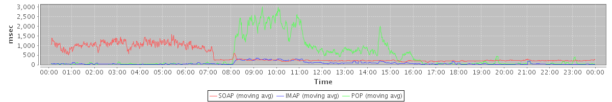 Host zm09.stanford.edu: Mailboxd: Response Time by Client Protocol