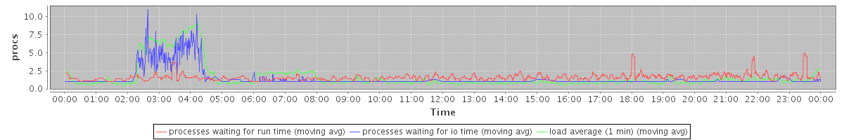 avg(processes waiting for run time) = 0.91 avg(processes waiting for io time) = 0.62 avg(load average (1 min)) = 1.64