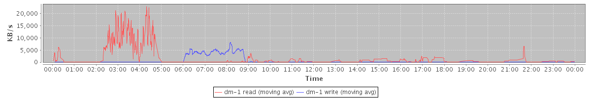avg(dm-1 read) = 25.24 avg(dm-1 write) = 14.60