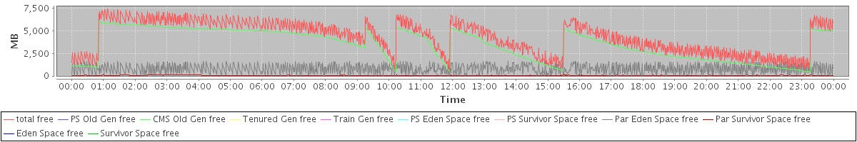 avg(total free) = 4320.76 avg(PS Old Gen free) = 0.00 avg(CMS Old Gen free) = 3474.68 avg(Tenured Gen free) = 0.00 avg(Train Gen free) = 0.00 avg(PS Eden Space free) = 0.00 avg(PS Survivor Space free) = 0.00 avg(Par Eden Space free) = 799.27 avg(Par Survivor Space free) = 46.81 avg(Eden Space free) = 0.00 avg(Survivor Space free) = 0.00