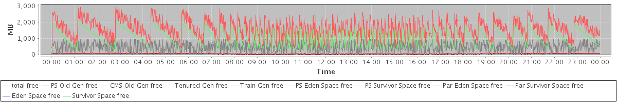 avg(total free) = 1609.47 avg(PS Old Gen free) = 0.00 avg(CMS Old Gen free) = 1078.80 avg(Tenured Gen free) = 0.00 avg(Train Gen free) = 0.00 avg(PS Eden Space free) = 0.00 avg(PS Survivor Space free) = 0.00 avg(Par Eden Space free) = 479.59 avg(Par Survivor Space free) = 51.09 avg(Eden Space free) = 0.00 avg(Survivor Space free) = 0.00