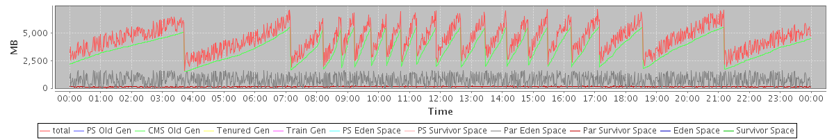 avg(total) = 4489.19 avg(PS Old Gen) = 0.00 avg(CMS Old Gen) = 3564.70 avg(Tenured Gen) = 0.00 avg(Train Gen) = 0.00 avg(PS Eden Space) = 0.00 avg(PS Survivor Space) = 0.00 avg(Par Eden Space) = 782.57 avg(Par Survivor Space) = 141.92 avg(Eden Space) = 0.00 avg(Survivor Space) = 0.00