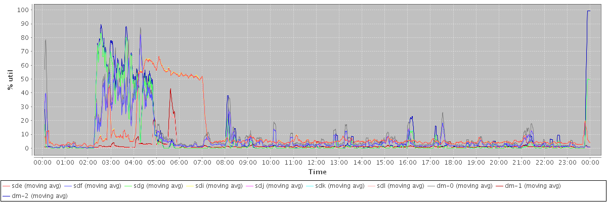 avg(sde) = 11.37 avg(sdf) = 7.12 avg(sdg) = 6.90 avg(sdi) = 11.43 avg(sdj) = 7.15 avg(sdk) = 6.90 avg(sdl) = 1.04 avg(dm-0) = 9.07 avg(dm-1) = 1.63 avg(dm-2) = 8.58