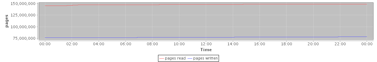 avg(pages read) = 147670309.47 avg(pages written) = 77404577.72