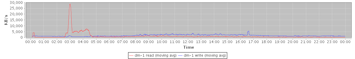 avg(dm-1 read) = 1121.94 avg(dm-1 write) = 1640.62