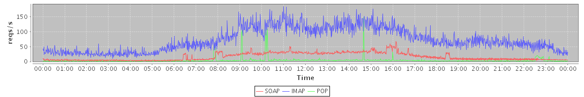 avg(IMAP) = 168.51 avg(IMAP SSL) = 939.89 avg(POP) = 0.09 avg(POP SSL) = 2.65 avg(SOAP sessions) = 747.27
