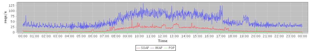 Host zm01.stanford.edu: Mailboxd: Request Rate by Client Protocol