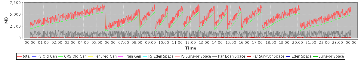 avg(total) = 4422.79 avg(PS Old Gen) = 0.00 avg(CMS Old Gen) = 3486.92 avg(Tenured Gen) = 0.00 avg(Train Gen) = 0.00 avg(PS Eden Space) = 0.00 avg(PS Survivor Space) = 0.00 avg(Par Eden Space) = 827.12 avg(Par Survivor Space) = 108.75 avg(Eden Space) = 0.00 avg(Survivor Space) = 0.00