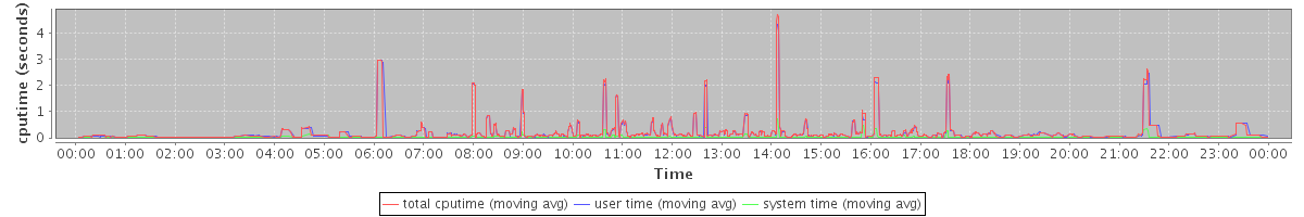 avg(total cputime) = 0.12 avg(user time) = 0.11 avg(system time) = 0.01