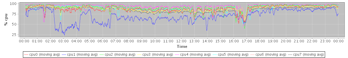 avg(cpu0) = 88.02 avg(cpu1) = 70.25 avg(cpu2) = 91.06 avg(cpu3) = 88.01 avg(cpu4) = 93.98 avg(cpu5) = 89.43 avg(cpu6) = 93.99 avg(cpu7) = 85.85