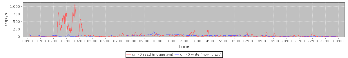 avg(dm-1 read) = 25.98 avg(dm-1 write) = 0.10