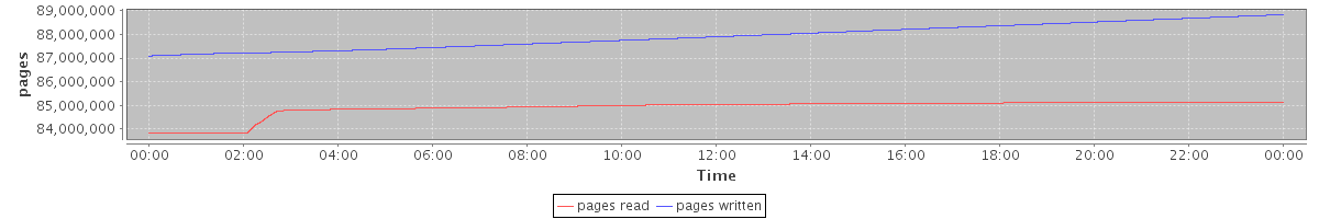 avg(pages read) = 84902199.73 avg(pages written) = 87913108.80