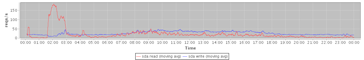 avg(sda read) = 21.11 avg(sda write) = 26.40