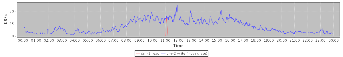 avg(dm-3 read) = 0.74 avg(dm-3 write) = 7.19