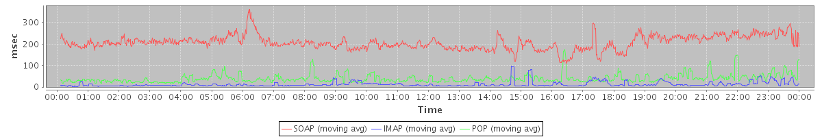 Host zm07.stanford.edu: Mailboxd: Response Time by Client Protocol