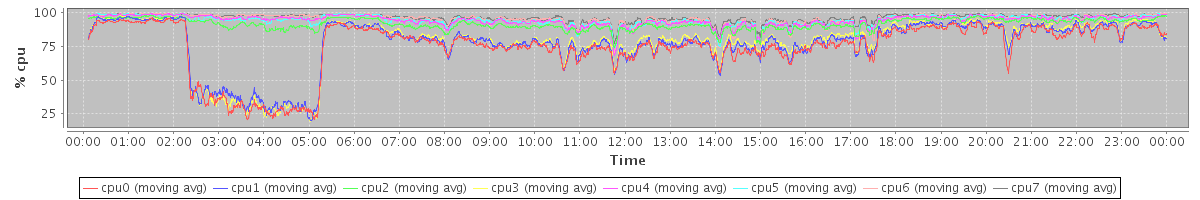 avg(cpu0) = 0.27 avg(cpu1) = 0.24 avg(cpu2) = 0.18 avg(cpu3) = 0.17 avg(cpu4) = 0.10 avg(cpu5) = 0.08 avg(cpu6) = 0.05 avg(cpu7) = 0.04