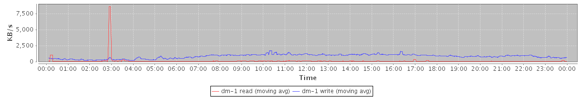 avg(dm-1 read) = 95.39 avg(dm-1 write) = 812.73