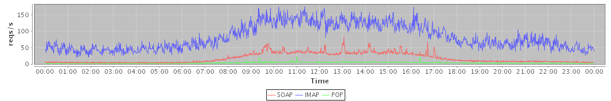 Host zm07.stanford.edu: Mailboxd: Request Rate by Client Protocol