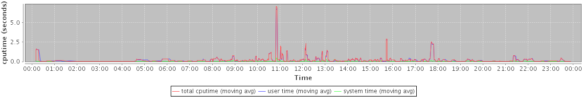 avg(total cputime) = 0.10 avg(user time) = 0.09 avg(system time) = 0.01