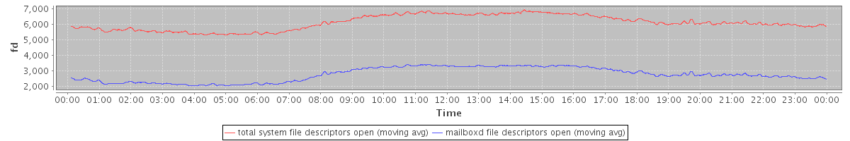 avg(total system file descriptors open) = 6123.64 avg(mailboxd file descriptors open) = 2765.45