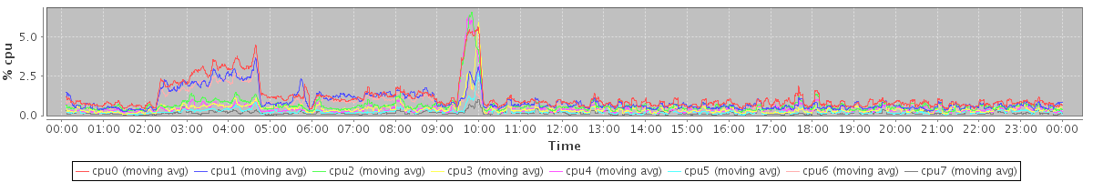avg(cpu0) = 0.17 avg(cpu1) = 0.24 avg(cpu2) = 0.05 avg(cpu3) = 0.08 avg(cpu4) = 0.03 avg(cpu5) = 0.05 avg(cpu6) = 0.03 avg(cpu7) = 0.03