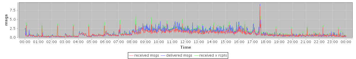 avg(received msgs) = 1.00 avg(delivered msgs) = 1.15 avg(received x rcpts) = 1.33