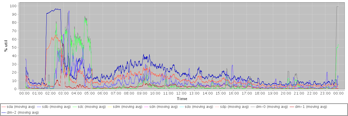 avg(sda) = 12.12 avg(sdb) = 8.88 avg(sdc) = 8.38 avg(sdm) = 12.13 avg(sdn) = 8.88 avg(sdo) = 8.38 avg(sdp) = 1.91 avg(dm-0) = 10.26 avg(dm-1) = 3.06 avg(dm-2) = 19.76