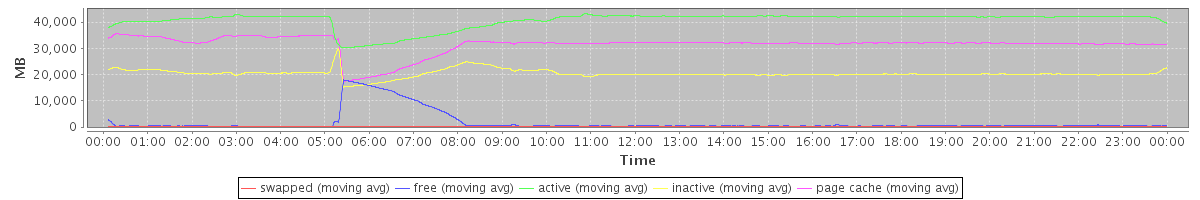 avg(swapped) = 11.41 avg(free) = 1704.23 avg(active) = 40617.81 avg(inactive) = 20382.04 avg(page cache) = 31430.83