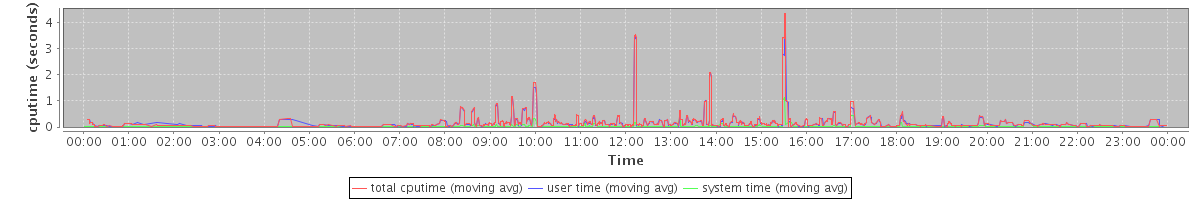 avg(mysqld) = 218.30 avg(mysqldump) = 2221.00 avg(zm-create-user) = 13.17 avg(zmmailboxd) = 868.74 avg(tripwire) = 927.65 avg(updatedb) = 73.11 avg(java) = 689.01 avg(gzip) = 2355.25 avg(puppetd) = 19.92 avg(zmcompresslogs) = 1675.29