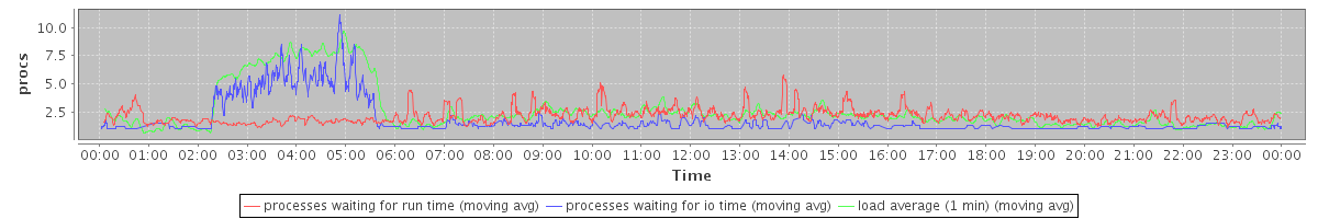 avg(processes waiting for run time) = 1.66 avg(processes waiting for io time) = 1.12 avg(load average (1 min)) = 2.63