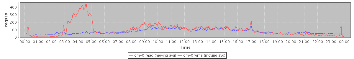 avg(dm-1 read) = 39.95 avg(dm-1 write) = 0.10