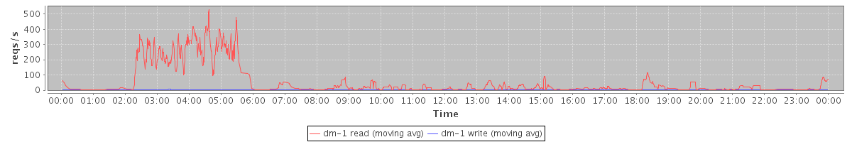 avg(dm-1 read) = 1768.94 avg(dm-1 write) = 1.33