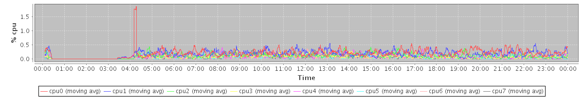 avg(cpu0) = 0.34 avg(cpu1) = 0.37 avg(cpu2) = 0.32 avg(cpu3) = 0.31 avg(cpu4) = 0.25 avg(cpu5) = 0.25 avg(cpu6) = 0.18 avg(cpu7) = 0.15