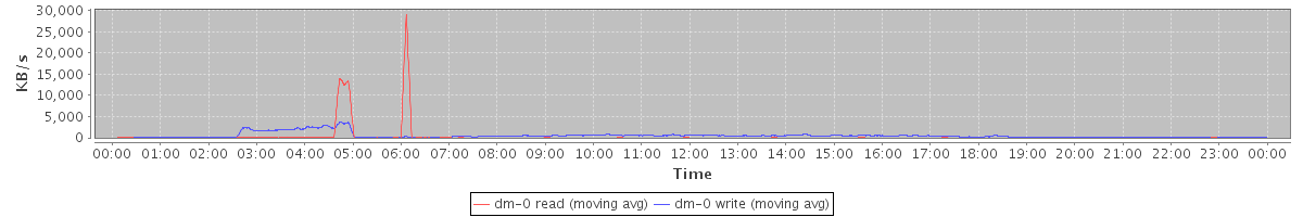 avg(dm-0 read) = 3.25 avg(dm-0 write) = 14.70