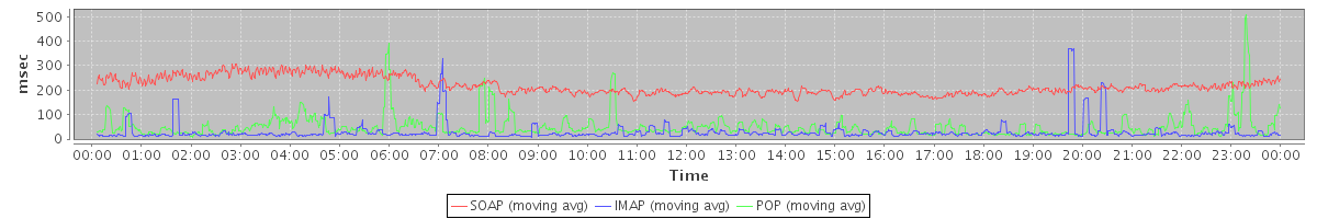 Host zm04.stanford.edu: Mailboxd: Response Time by Client Protocol