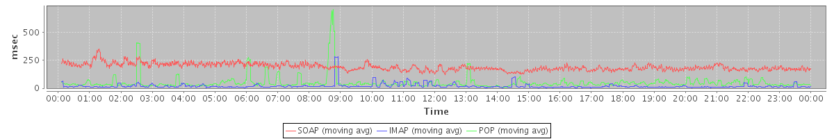 avg(IMAP) = 125.12 avg(IMAP SSL) = 725.13 avg(POP) = 0.03 avg(POP SSL) = 1.35 avg(SOAP sessions) = 155.20