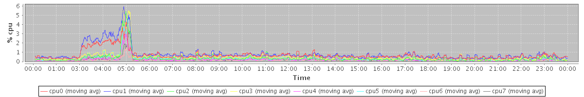 avg(cpu0) = 0.11 avg(cpu1) = 0.16 avg(cpu2) = 0.05 avg(cpu3) = 0.07 avg(cpu4) = 0.02 avg(cpu5) = 0.04 avg(cpu6) = 0.01 avg(cpu7) = 0.02