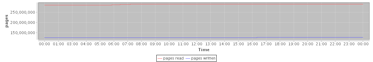 avg(pages read) = 288700948.78 avg(pages written) = 125639554.77