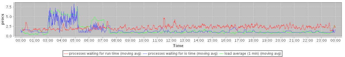 avg(processes waiting for run time) = 1.86 avg(processes waiting for io time) = 0.68 avg(load average (1 min)) = 1.67