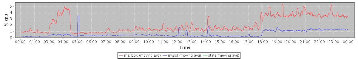 avg(mailbox) = 2.03 avg(mysql) = 0.55 avg(stats) = 0.00