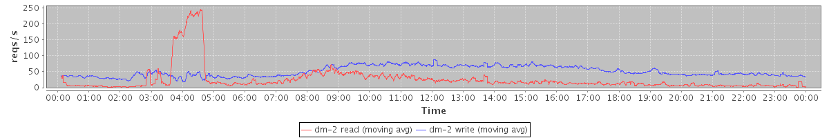 avg(dm-2 read) = 408.56 avg(dm-2 write) = 1185.50