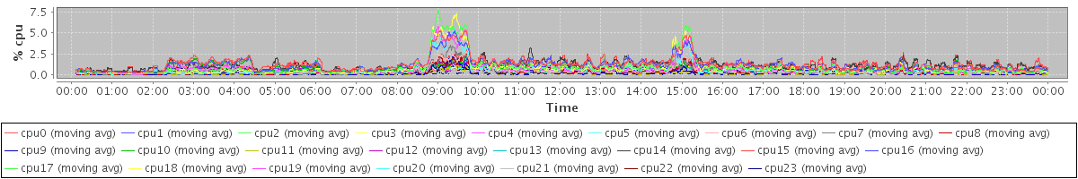 avg(cpu0) = 0.17 avg(cpu1) = 0.19 avg(cpu2) = 0.15 avg(cpu3) = 0.13 avg(cpu4) = 0.11 avg(cpu5) = 0.08 avg(cpu6) = 0.04 avg(cpu7) = 0.04 avg(cpu8) = 0.03 avg(cpu9) = 0.02 avg(cpu10) = 0.07 avg(cpu11) = 0.01 avg(cpu12) = 0.03 avg(cpu13) = 0.03 avg(cpu14) = 0.06 avg(cpu15) = 0.06 avg(cpu16) = 0.08 avg(cpu17) = 0.06 avg(cpu18) = 0.07 avg(cpu19) = 0.05 avg(cpu20) = 0.04 avg(cpu21) = 0.00 avg(cpu22) = 0.01 avg(cpu23) = 0.00
